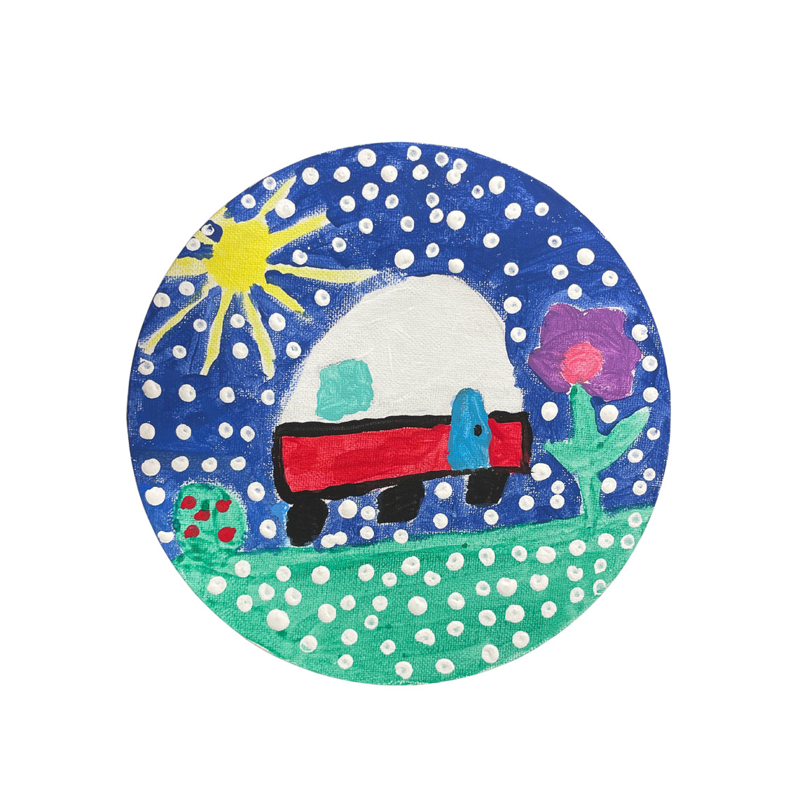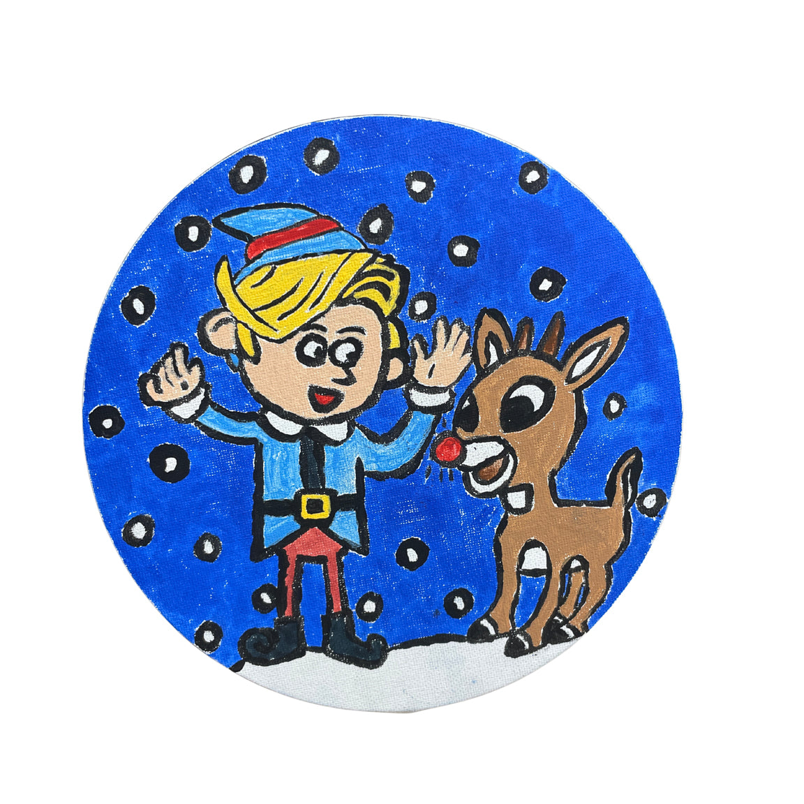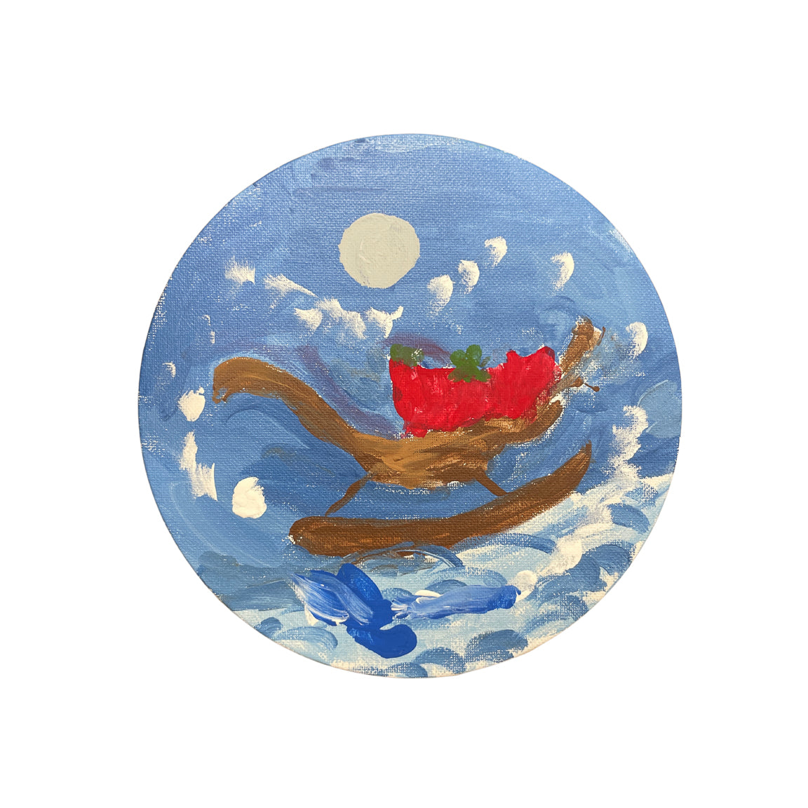 Acrylic on canvas. Ready to hang or comes with an easel for tabletop display.