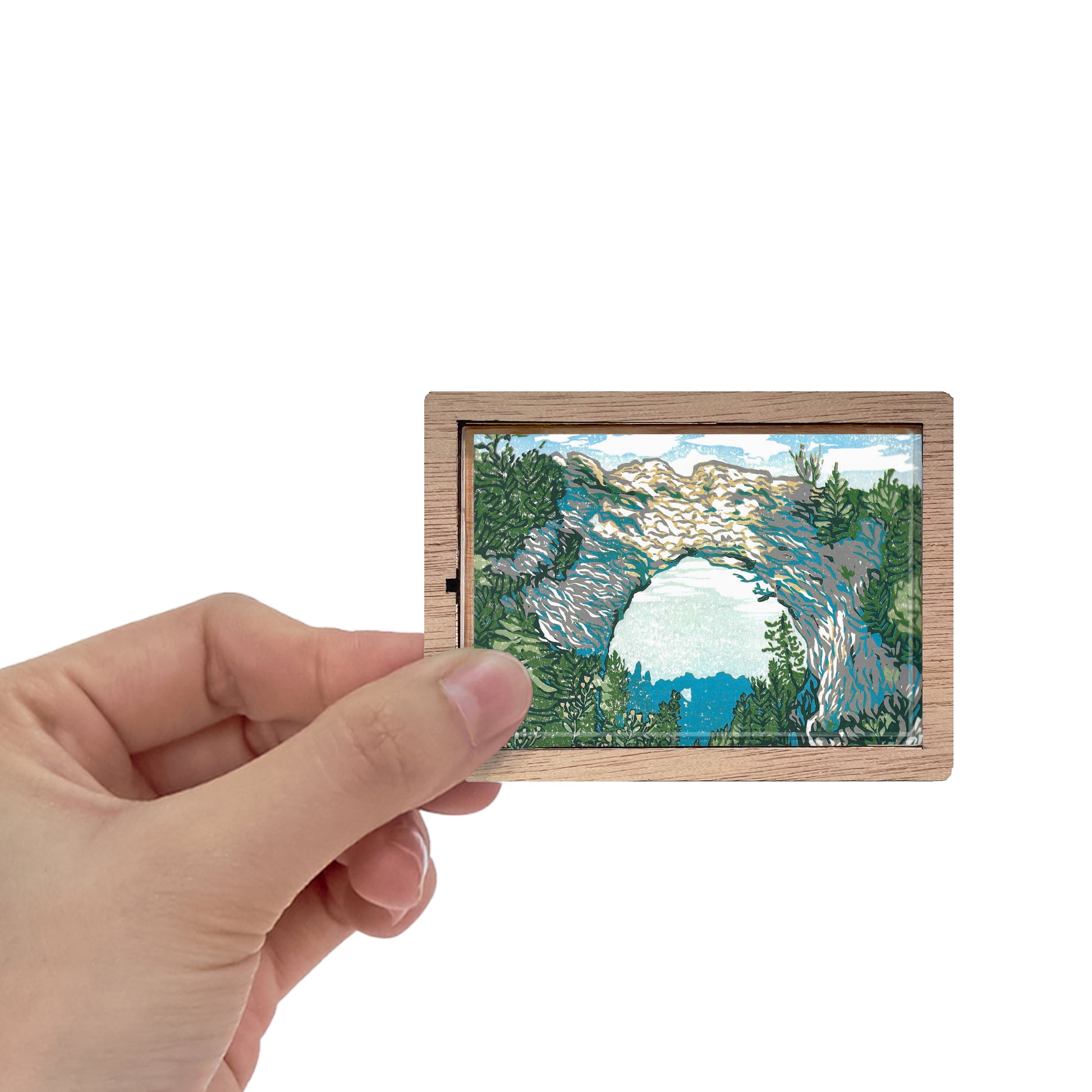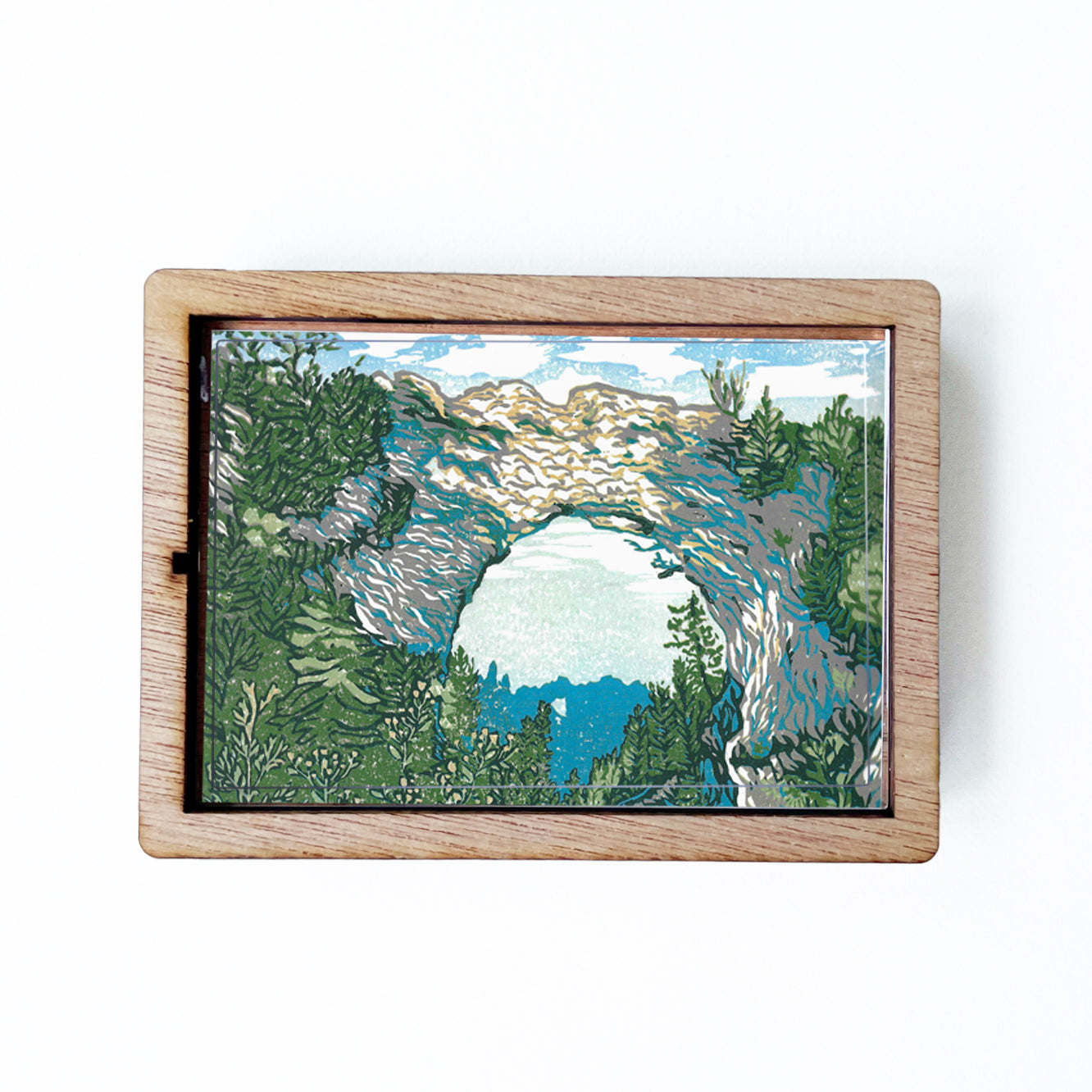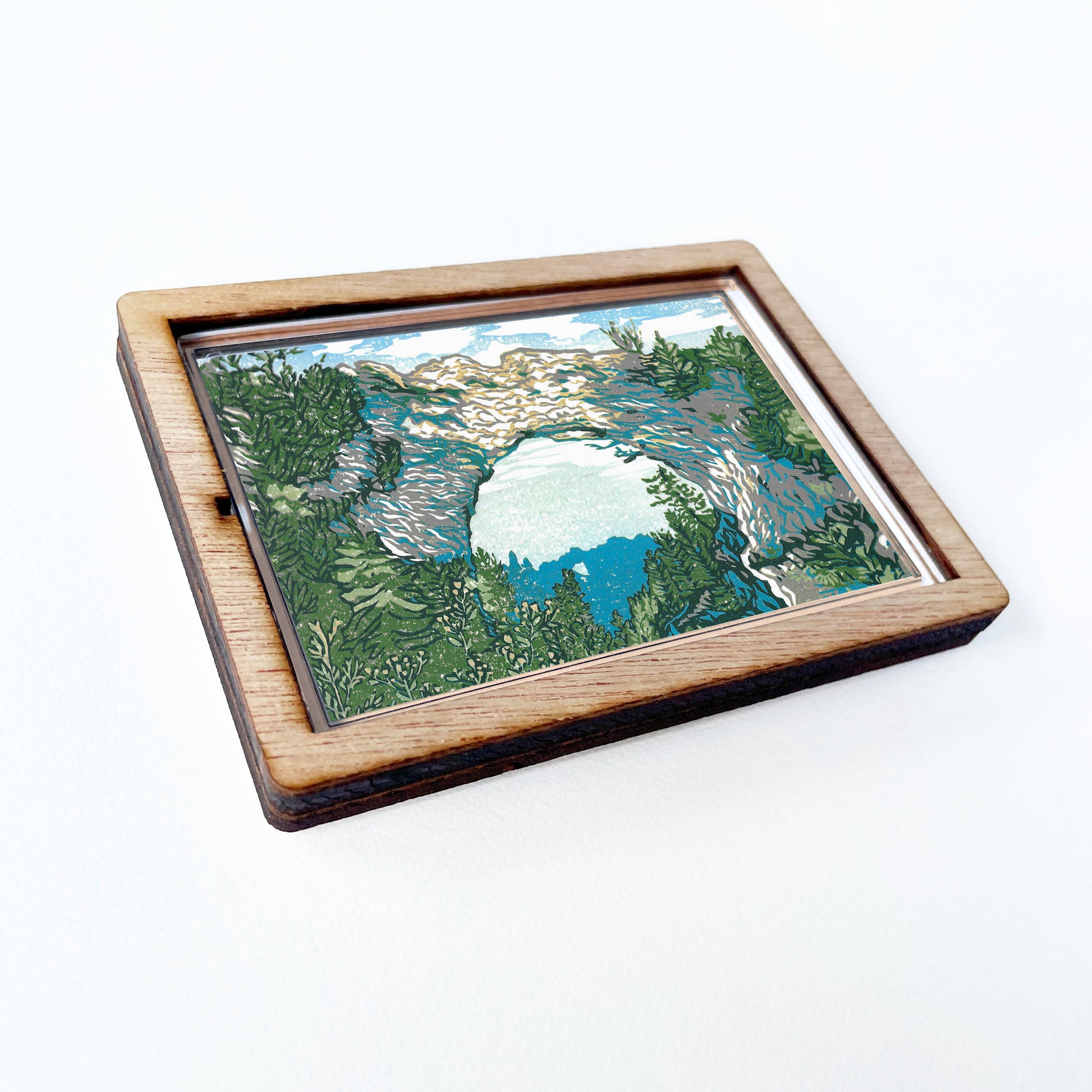 Decorate your fridge, locker or any other metal surface with this charming magnet featuring a solid wood frame and clear lens. The design is a reproduction of a contemporary block print by Natalia Wohletz.