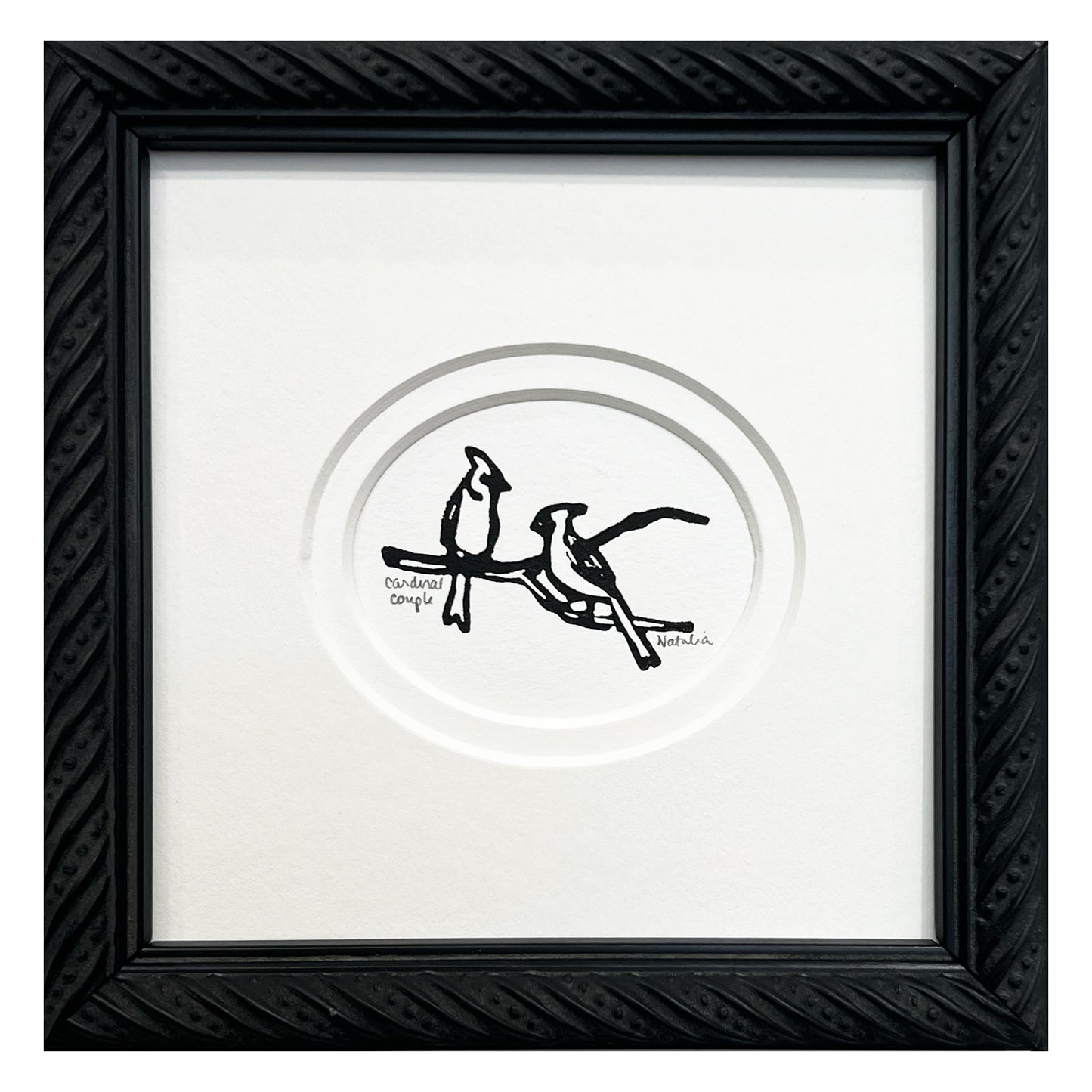 Mini Cardinal Couple Original Block Print