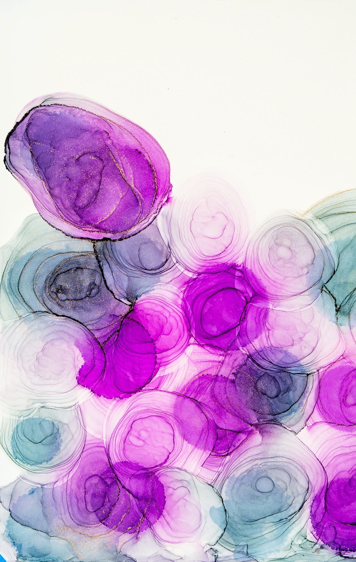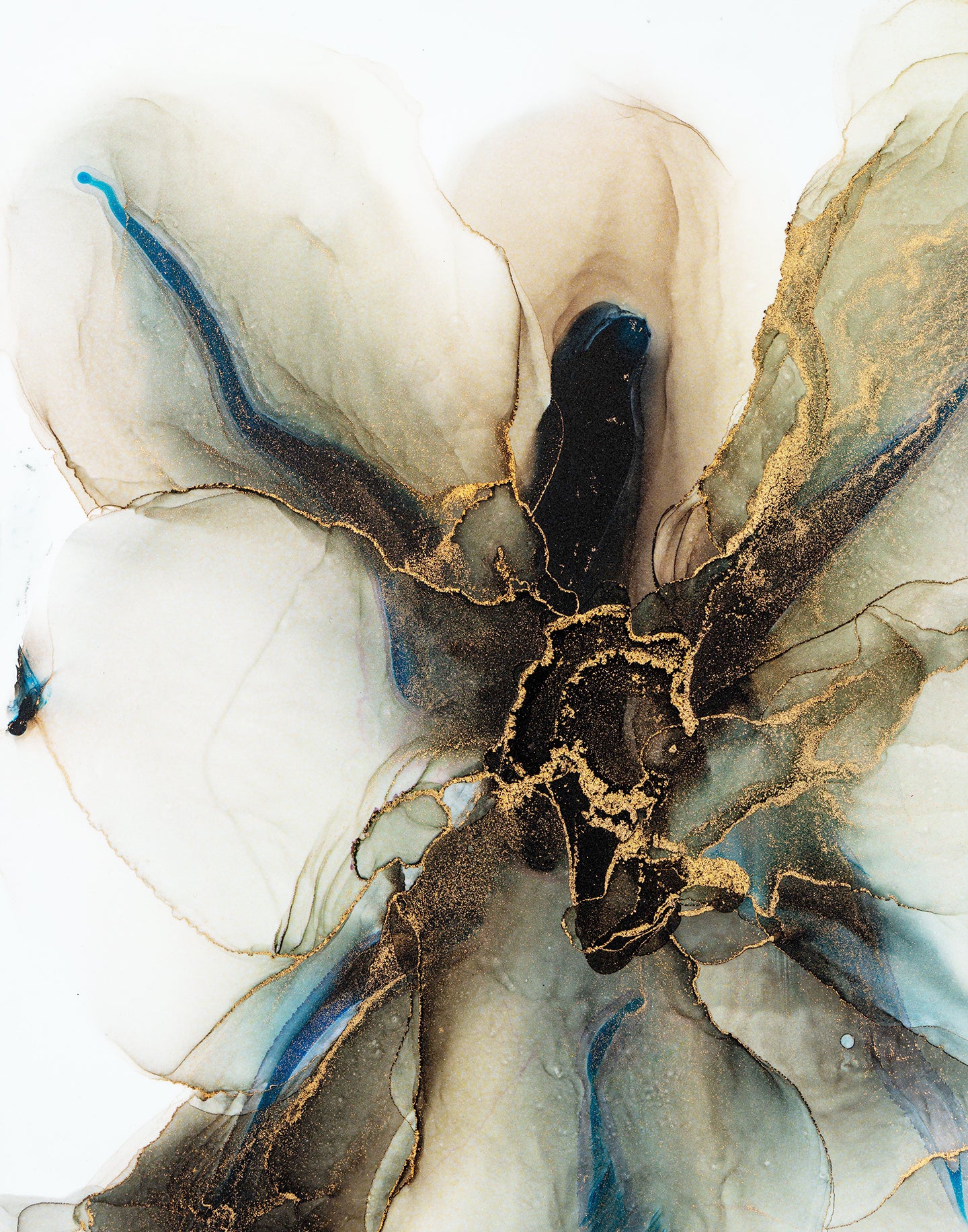 Patti Wylie from Commerce Township, MI creates vibrant and original art using alcohol inks. She enjoys watching the ink flow across the paper. Crafting with her mother as a child sparked her love for creativity, and she has passed it on to her artistic daughter. Alcohol ink painting is a free flowing and unpredictable art form which makes it a welcome change from her rigorous, intense daily work as a dentist.