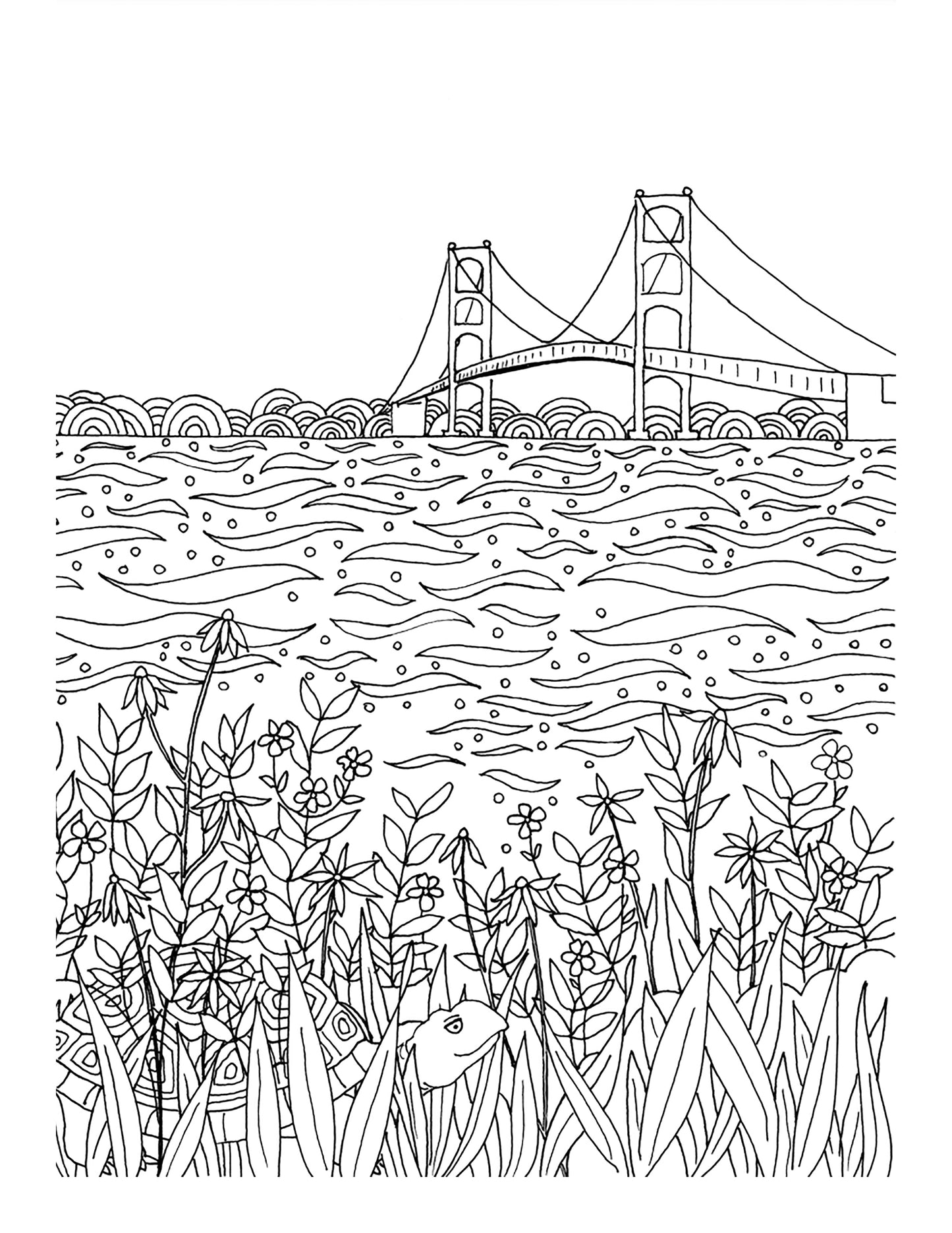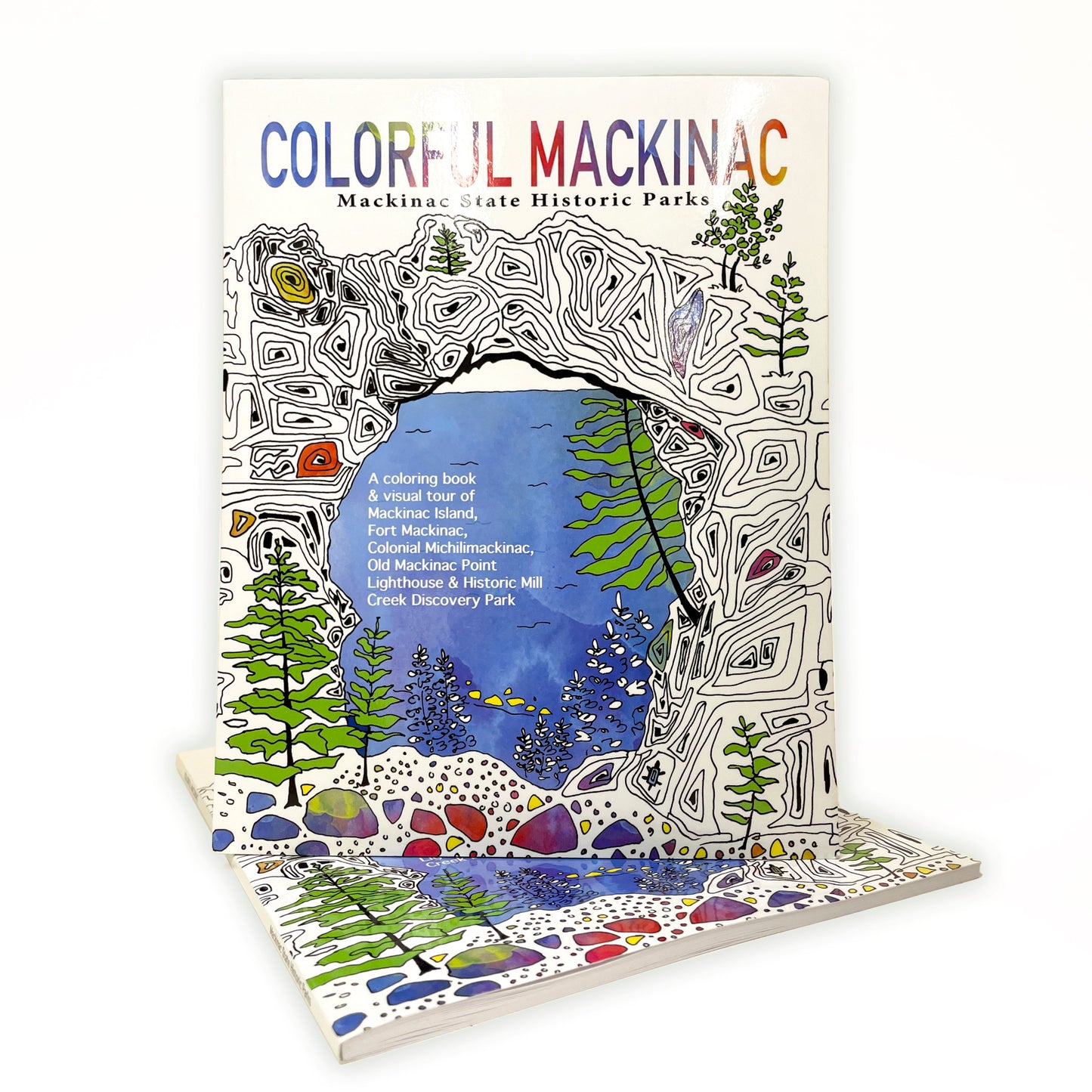 Thirty fun designs to color and photographs take artists and readers on a visual tour of Mackinac Island, Fort Mackinac, Colonial Michilimackinac, Old Mission Point Lighthouse and Historic Mill Creek Discovery Park. Corresponding color photographs and text offer insight into the rich and varied parks that feature miles of trails, stunning vistas, serene forests and inspiring historic treasures. Published by the Mackinac State Parks with Mackinac Memories.