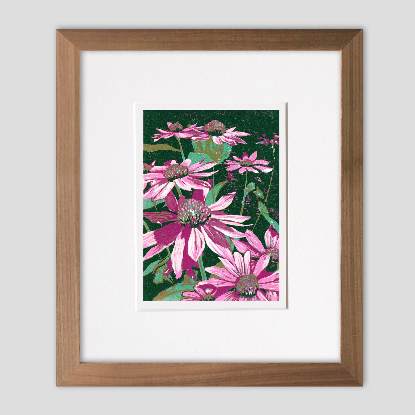 Printed by hand with soy-based ink on quality 280 lb. paper. The acid-free, archival paper ensures the original block print will last a lifetime for generations to enjoy. Each print is presented in an archival, 100% alpha cellulose mat with a backing board. Packaged in an archival clear, recyclable bag.