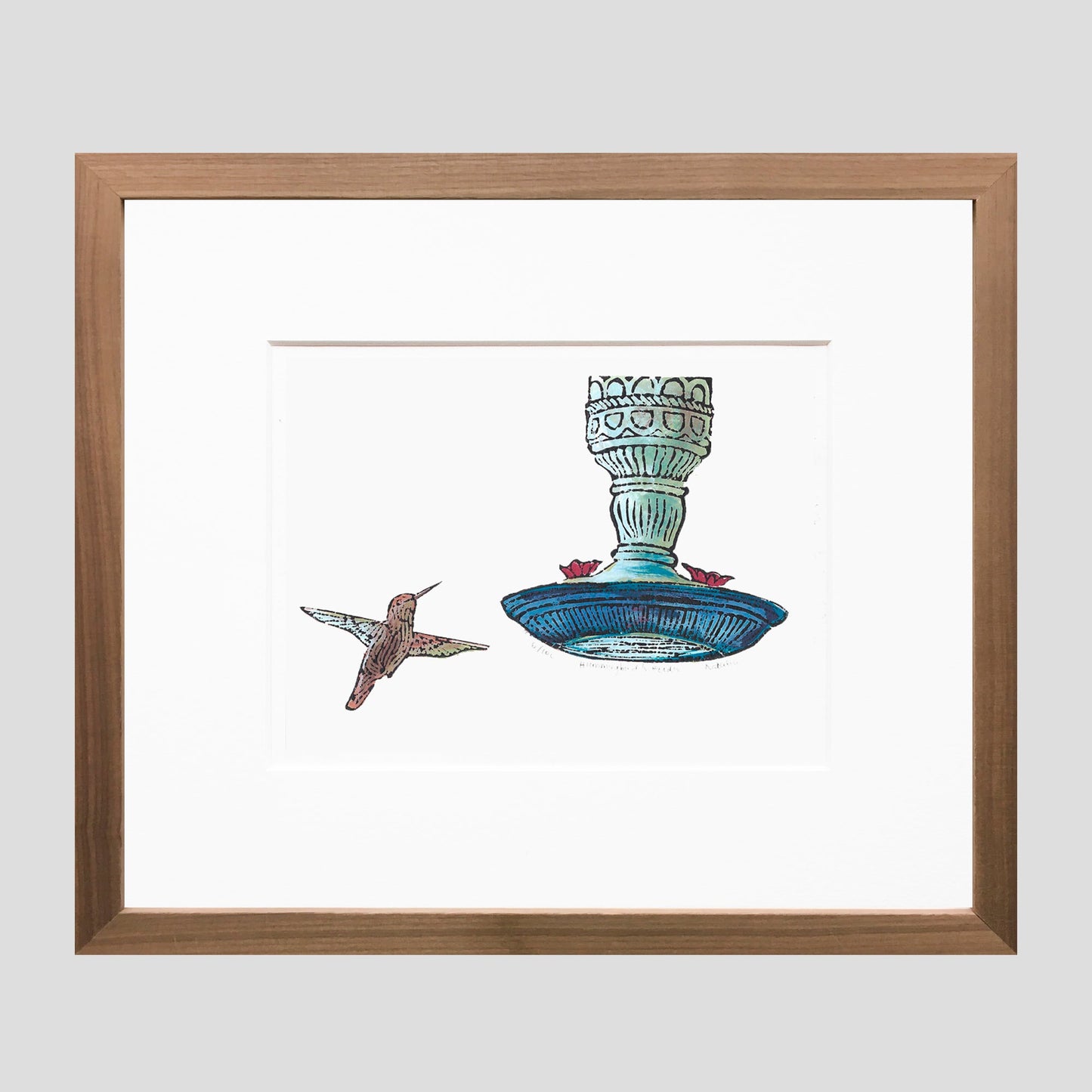 Hummingbird and Feeder Original Block Print
