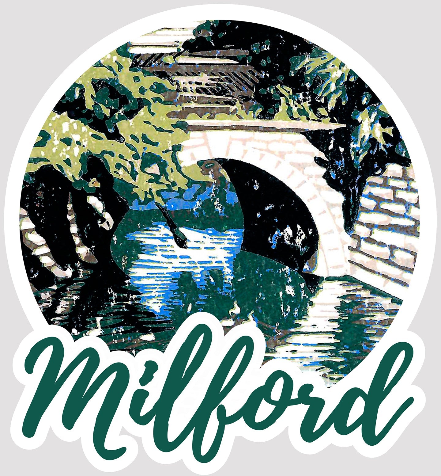 Made of thick, durable vinyl that's laminated to protect each sticker from exposure to wind, rain and sunlight. Decorate a water bottle with them and they'll even withstand cleaning in a dishwasher. Inspired by the historic train bridge that passes over the Huron River in the Village of Milford, Michigan. Featuring artwork by Natalia Wohletz of Peninsula Prints.