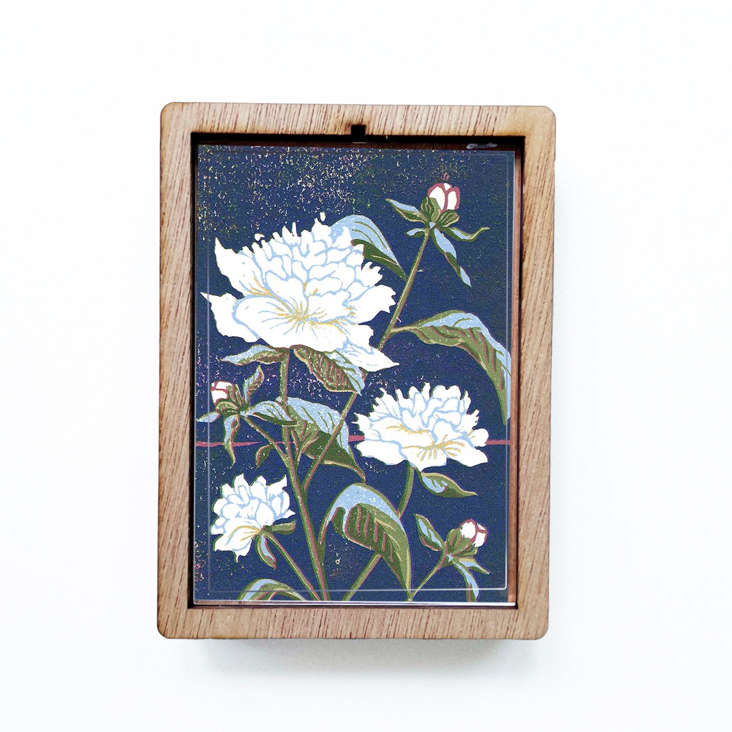Decorate your fridge, locker or any other metal surface with this charming magnet featuring a solid wood frame and clear lens. The design is a reproduction of a contemporary block print by Natalia Wohletz.