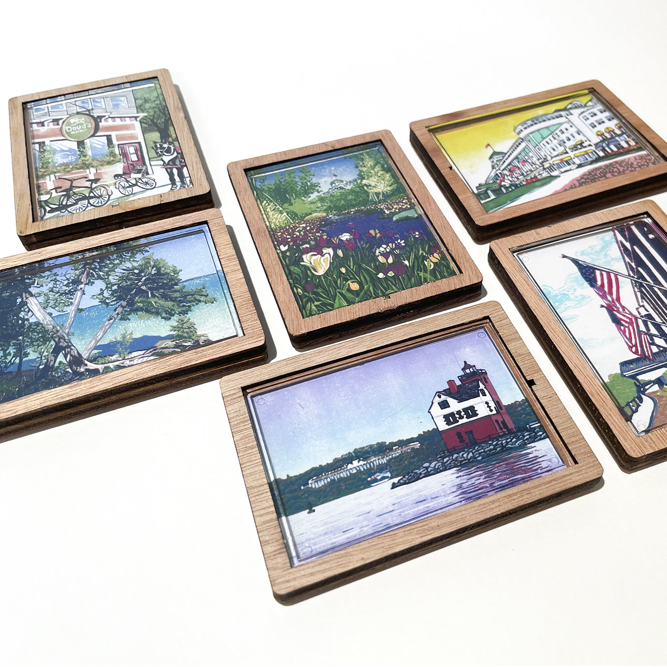 Decorate your fridge, locker or any other metal surface with this charming magnet featuring a solid wood frame and clear lens. The design is a reproduction of a contemporary block print by Natalia Wohletz.