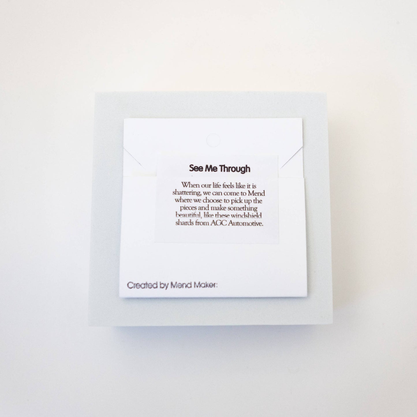 When our life feels like it is shattering, we can come to Mend where we choose to pick up the pieces and make something beautiful, like these windshield shards from AGC Automotive.